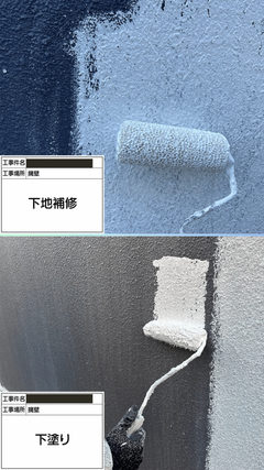 下塗りで密着性を確保し、中塗り・上塗りで塗膜厚を形成。